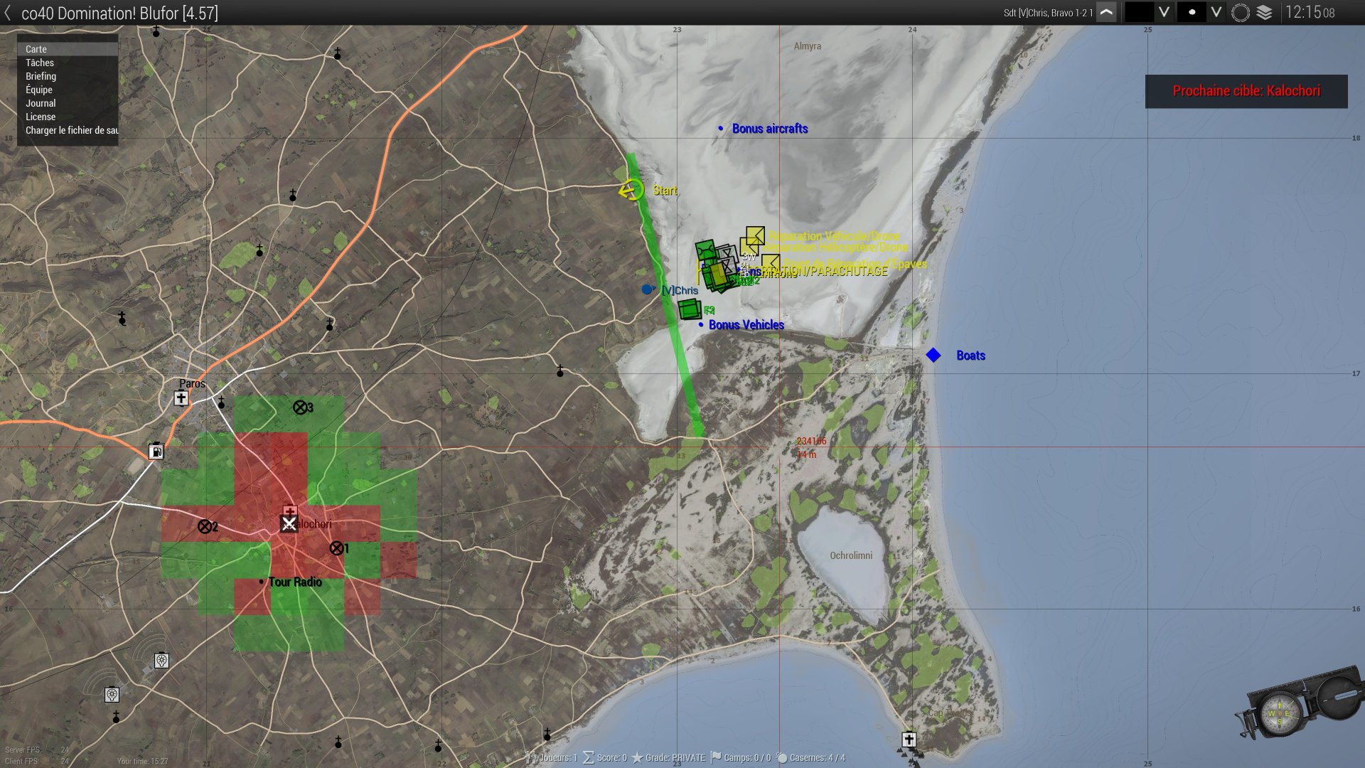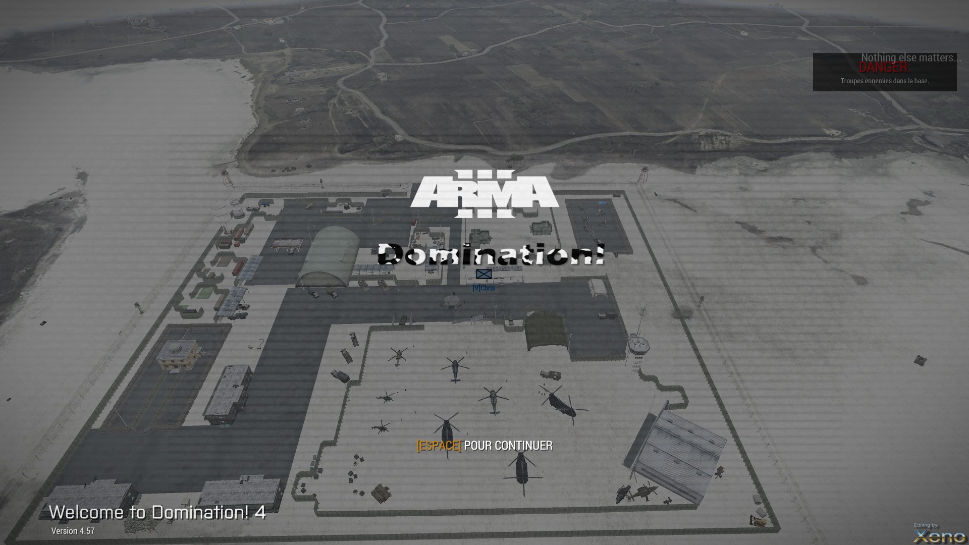 Salut! J'ai finalisé la Domination 4.57.J'ai implanté ma création de base 600 * 600 m sur le lac salé(pas d'autres zones sur la carte qui puissent accueillir cette superficie sans utiliser de cache terrains), double grillage d'enceinte + mur, une dizaine de miradors. Je voulais rendre plus sexy, personnaliser au goût de la team la Domination de Xeno. Il y a plus de slots Medic,le MHQ sera désormais un Marshall. Les fonctionnalités restent les mêmes que la version précédente. Je compte sur l'un d'entre vous pour une info; je ne trouve pas où changer la hauteur de saut du halo jump, en dessous de la couverture nuageuse serait idéale, certains proposent 500 m,à voir. Tout fonctionne correctement j'attend la version définitive de votre côté et sa mise à disposition afin d'implanter la base. Je joins quelques photos. A bientôt!