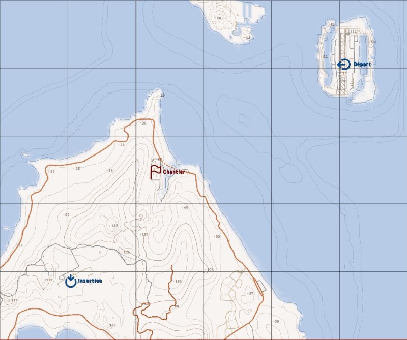 Les hélicoptères qui serviront pour l'insertion devront atterrir dans l'aérodrome de l'île d'Aka. C'est le seul endroit à proximité du barrage ou un atterrissage sûr est possible.