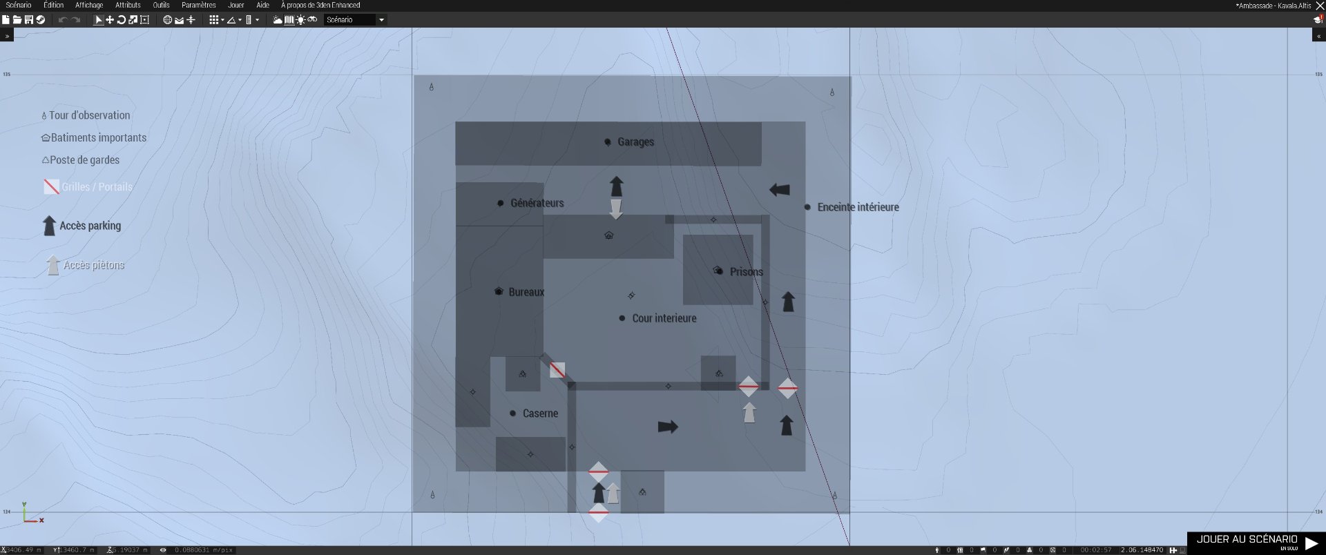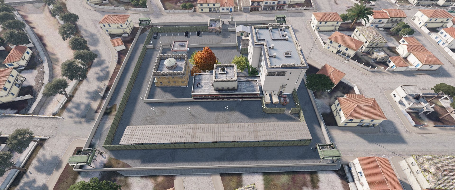 Ensuite le passage de la deuxième guérite fut compliqué aussi, pareil des angles de tirs compliqués et complexes ! (Entre le personnels dans la guérite, dans l’entrée, derrière la guérite, depuis la prison, le bâtiment administratif et l’immeuble … j’ai été plus que vicieux :lol: ). A un moment certains ont pensé que l’ia tirait à travers les murs (ce fut peut être le cas, mais pas la, un ia en a flingué deux ou trois via une très petite fenêtre de tir au travers de la guérite).