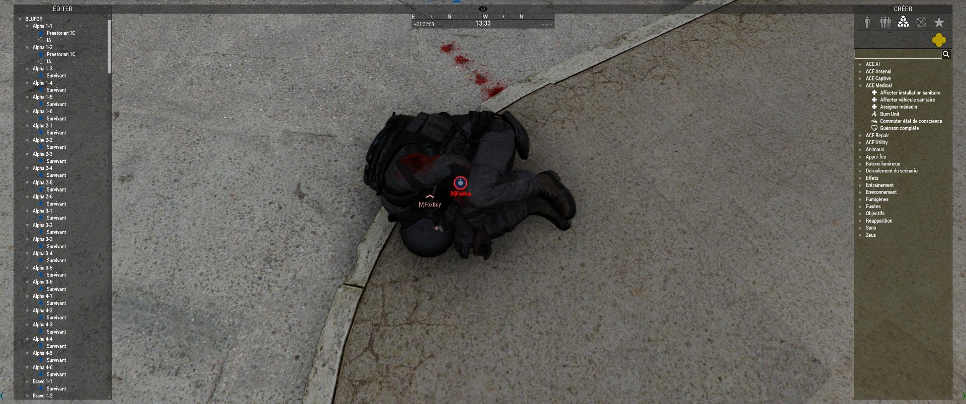 Bon, pour les soucis de perfs, jusqu’à l’arrivée des renforts ce fut bon, mais effectivement, les 120 ia qui courent partout avec leurs camions, ce fut trop gourmand (mais 150 en statique ça passe bien !) Mais c’était prévu, car si on avait eu un opérateur drone en plus du te, ils auraient pu voir l’arrivée des renforts de loin !
